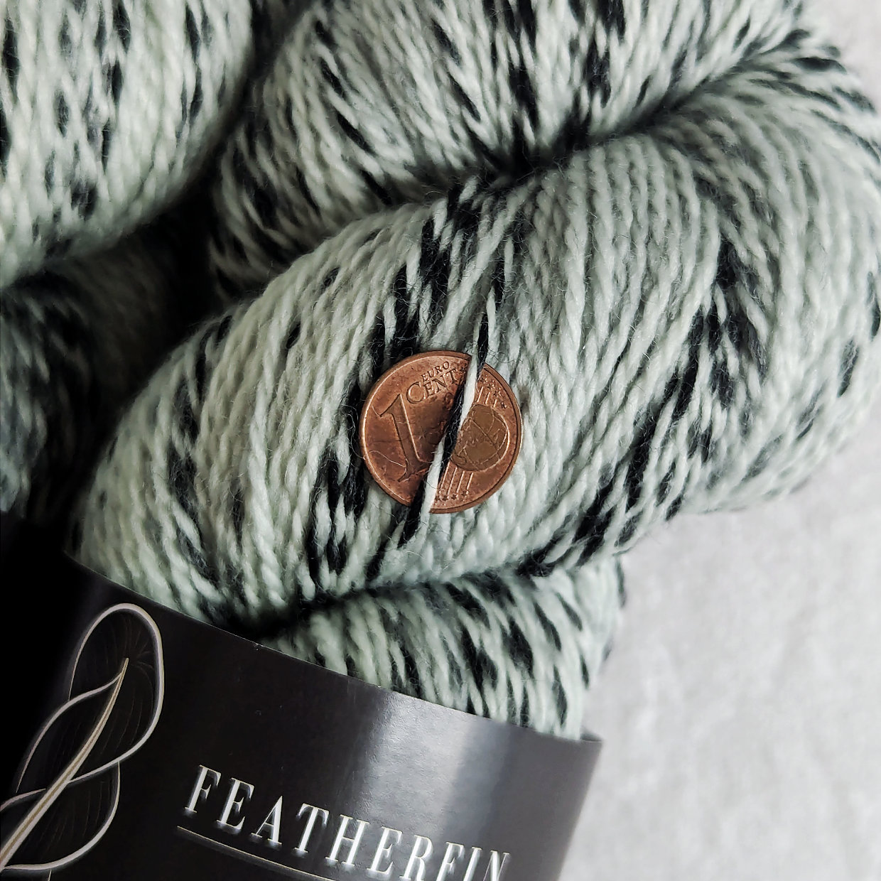 Schwarze Marmorierung: 2-fädiges Garn mit einem Faden, der ins Schwarze übergeht.